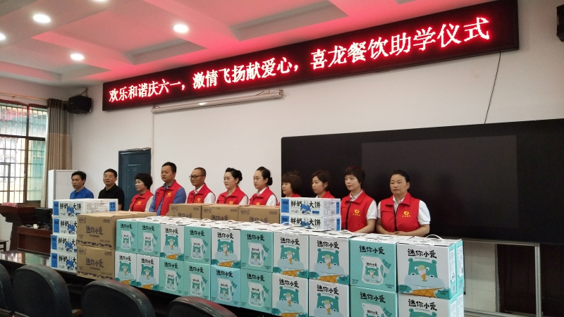 5月30日上午,桃江县劳动模范、桃江县喜龙餐饮管理有限公司董事长龙咏非带领她的餐饮团队来到桃江县特殊教育学校,为该校100名师生每人送去一箱牛奶和一箱饼干,为该校少年儿童送去关爱和祝福。