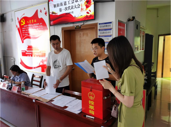 会议以不记名投票方式,选举出了朝阳街道工会联合会第一届委员会委员、第一届工会经费审查委员会委员、第一届工会女职工委员会委员。然后召开工会联合会全体委员第一次大会、经费审查委员会全体委员第一次大会,女职工委员会全体委员第一次大会。