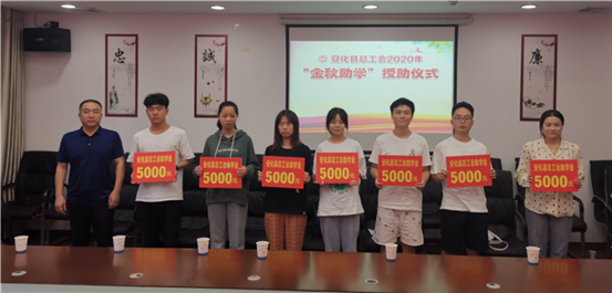 9月4日,安化县总工会举行2020年金秋助学授助仪式。全县有96名困难职工子女每人获得了3000至5000元不等的资助。
