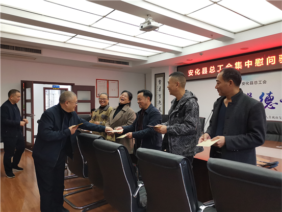 近日,安化县总工会主席赵毅昂、党组书记廖妙琼一同慰问了六名驻村扶贫工作队员及其家属,并与他们座谈交流。