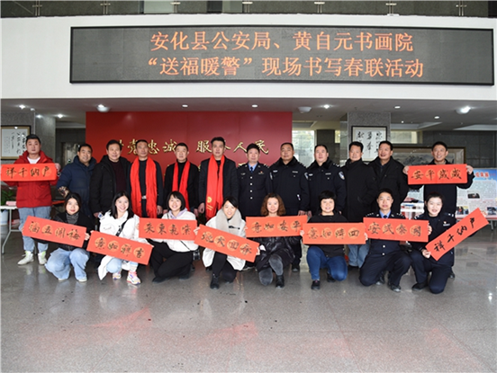 2月1日,安化县公安局在县局机关一楼大厅开展 “送万福、进万家”书写春联活动。 (陶能/摄)