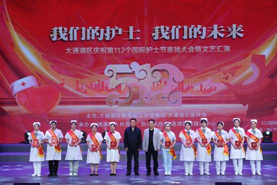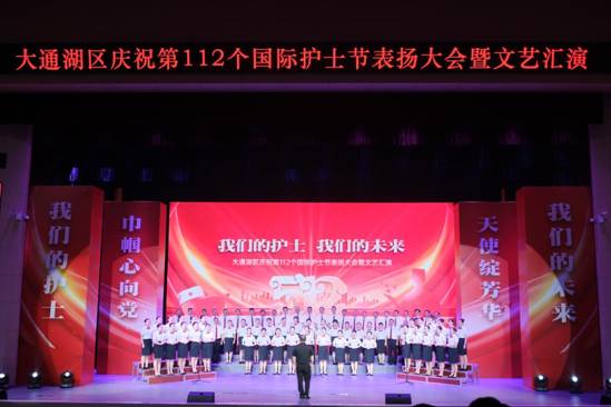 为庆祝第112个“5.12”国际护士节,5月10日晚上,大通湖区人民医院在区文体中心演出厅隆重举行“我们的护士 我们的未来”第112个国际护士节表扬大会暨文艺汇演。特邀市卫健委相关领导、全区副处级以上领导干部、区直和驻区各单位负责人、各镇(办事处)负责人、教育卫生健康局机关人员、全区各医疗机构医务人员、行政村医务人员、医务工作者家属共计800余人参加活动。活动由分管卫生健康的副区长王香琴主持。