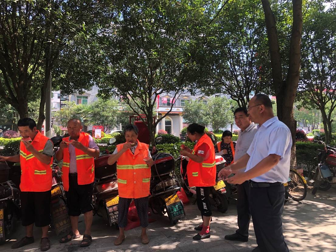 “阿姨,过来休息一会,吃点西瓜解解暑吧......”面对持续高温天气,为做好高温天气作业劳动保护工作,预防和控制职业性中暑事件的发生,7月12日上午,大通湖区河坝镇工会联合会慰问组来到户外劳动者服务站开展2023年“夏送清凉”活动。