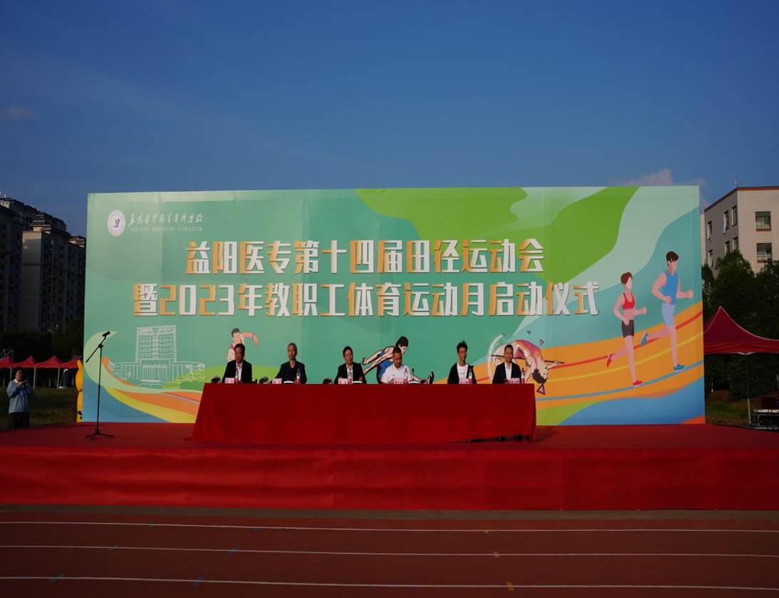 10月20日上午,益阳医专第十四届田径运动会暨2023年教职工体育运动月启动仪式在学校田径运动场举行。