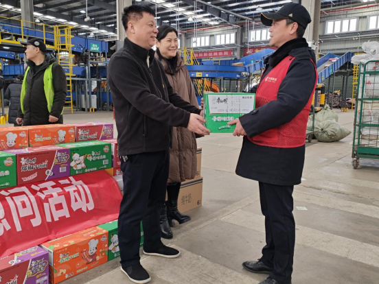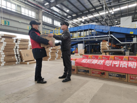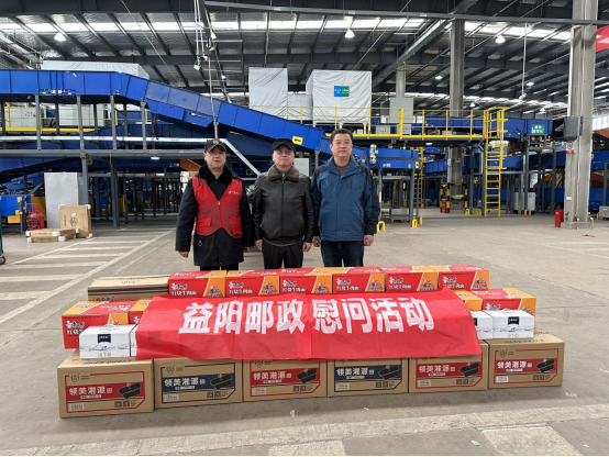 1月25日上午,益阳市邮政分公司邮件处理中心收到了来自市公司的方便面、自热米饭、牛奶等慰问物资,并由市公司工会主席潘远征和分管网运的杨旭东副总现场发放。这是益阳市分公司党委和工会为顺利落实春节邮运旺季生产要求开展的“邮运旺季”慰问活动。受益阳市分公司高昌华总经理的委托,潘总、杨总带上市公司党委和工会的关怀,送上大量慰问物资,对坚守在处理中心的员工表示慰问,对他们克服困难、坚守岗位、踏实工作的付出表示慰问和感谢。
