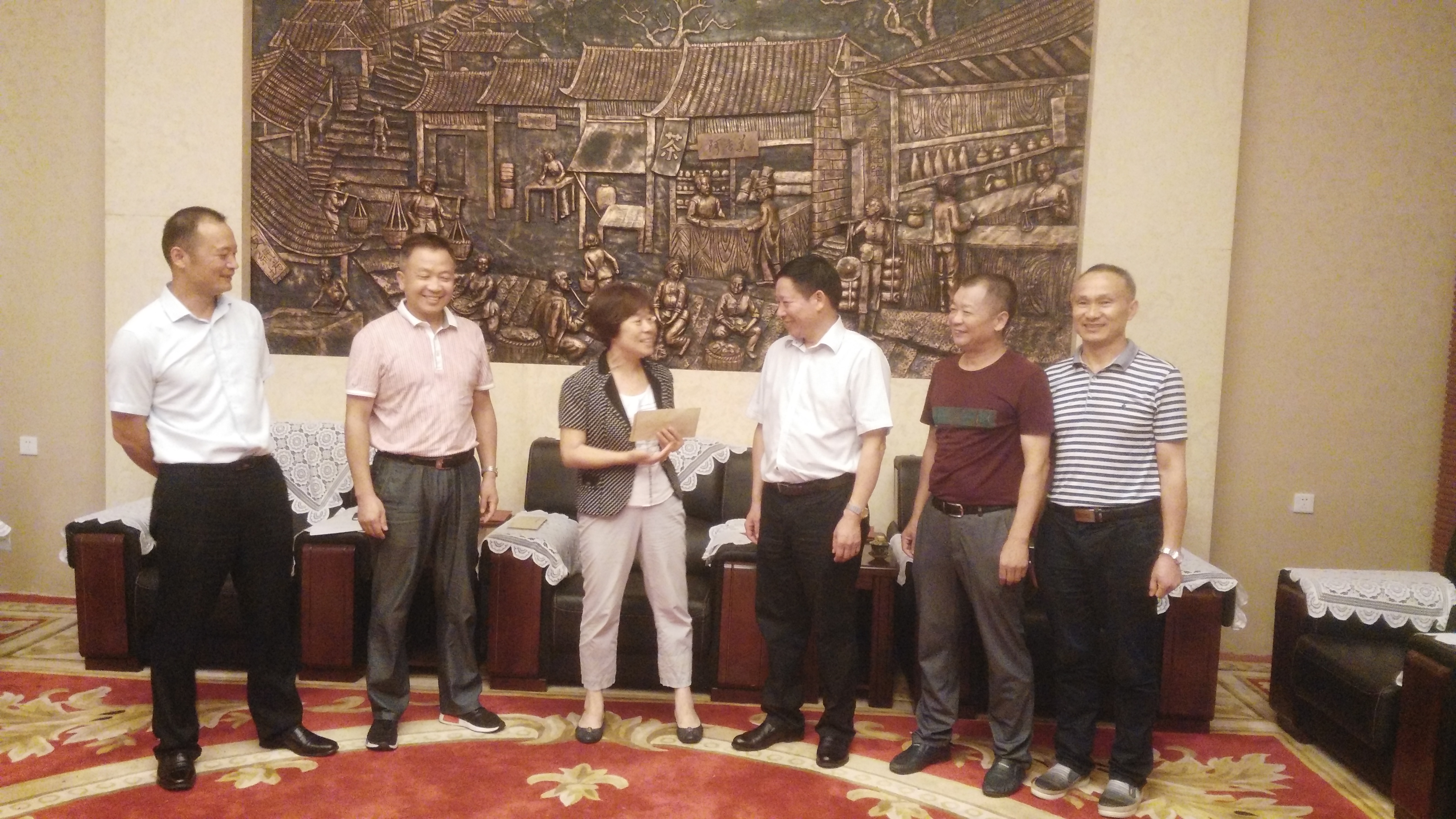 8月2日,省总工会党组成员、经审委主任郭建中同志来安化调研工会工作。在湖南阿香茶果食品有限公司,郭主任一行参观了黑茶文化长廊、茶博物馆、生产车间,全国五一劳动奖章获得者、湖南省劳动模范夏绪平同志详细介绍了企业生产经营状况和工会工作开展情况。