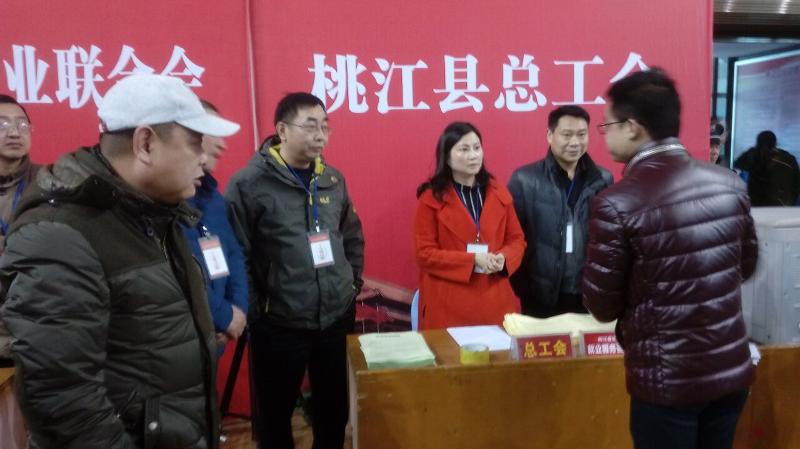 2017年2月5日上午,桃江县总工会、桃江县人力资源和社会保障局在县体育馆举办“搭建供需平台、促进转移就业,就业帮扶、真情相助”为主题的大型招聘会。