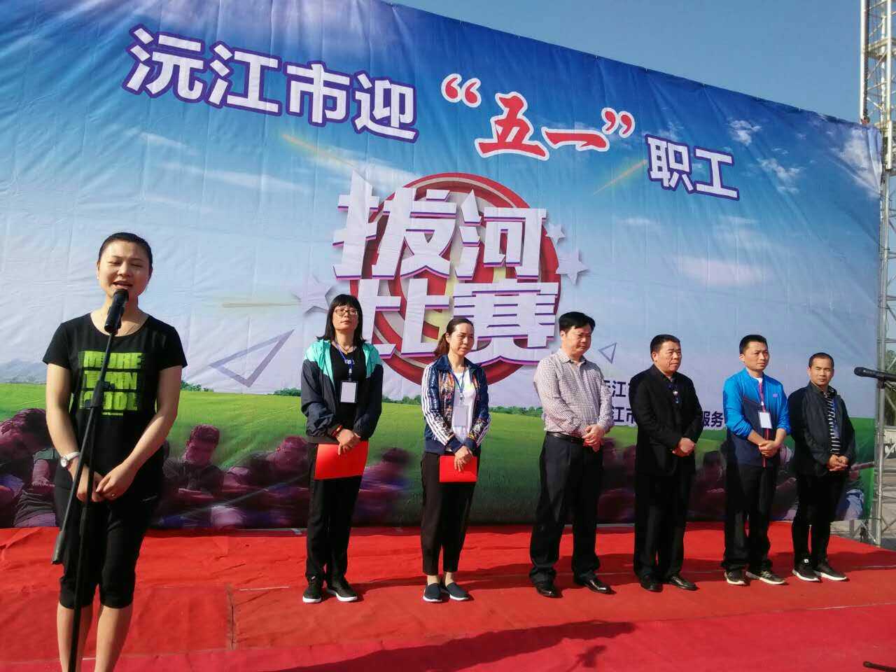 4月28日,为庆祝五一国际劳动节,沅江总工会在蓼叶湖广场举办了沅江市迎“五一”职工拔河比赛,镇场(街道)、市直局、企业48支代表队,近800名职工参加了比赛。益阳市总工会副主席张享敦出席开幕式并作重要讲话。