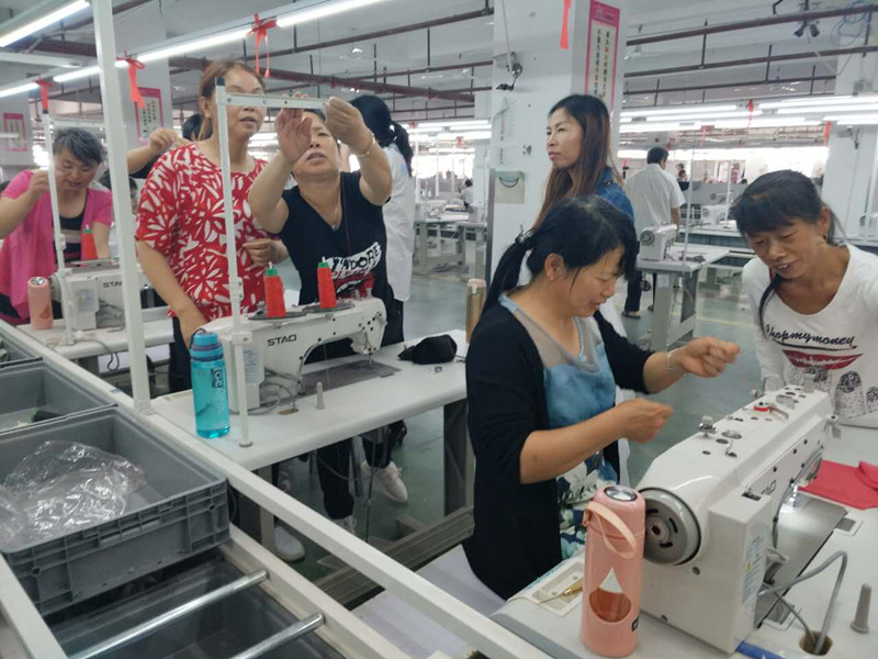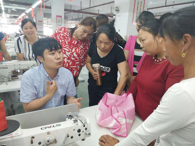 5月18日,在区委宣传部和区总工会的积极联系和协调下,10名东团村第一批贫困妇女进入凯特密欧服饰公司生产车间参加为期一个月的免费技能培训,并由技术精湛的车间主任亲自授课、手把手指导10名妇女上机操作,食宿、生产岗位和工具均由公司安排妥当。