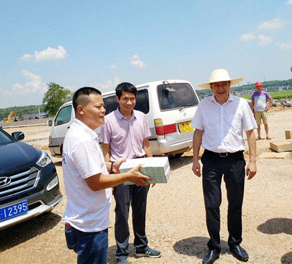 连日来,气温节节攀升,为切实保障劳动者身体健康,推进一线高温天气的安全生产,7月26日上午,赫山区委书记邓正安、区委副书记马文才率领赫山区总工会将400份清凉物资送到了坚守在高温施工一线的衡龙新区路网建设工地的建筑工人手上,为他们送上一丝清凉和关怀。
