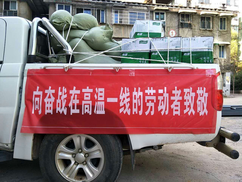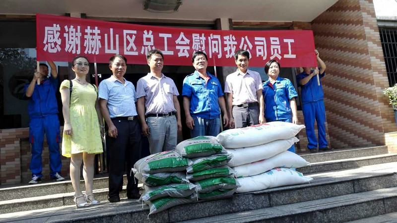 当天,区总工会主席易继梅、党组书记刘先跃还带领班子成员一行先后到区环卫处、区公安分局警务平台、交警三大队值勤点、益阳橡塑机械、赫山供电分公司、衡龙新区拆迁部、凯特密欧服饰、艾华集团、赫山链条、华翔翔能、龙舟农机.等高温一线作业工人进行慰问,将毛巾、花露水、藿香正气水、清凉油、矿泉水、西瓜、白糖、绿豆等防暑降温物资送到职工手中,并叮嘱他们合理安排作息时间,注意生产安全。同时,要求企业、工地落实好高温期间的劳动安全保护措施。