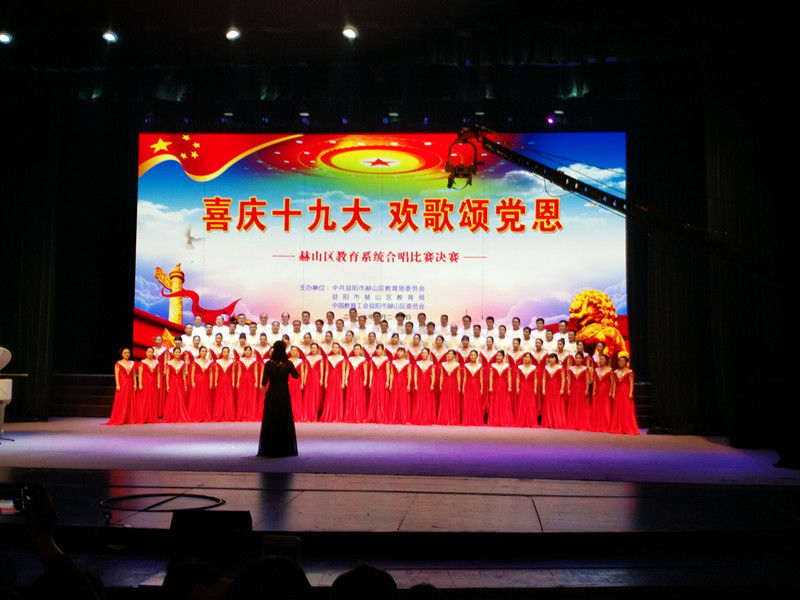 10月21日,由中共益阳市赫山区教育局委员会、益阳市赫山区教育局、中国教育工会益阳市赫山区委员会共同举办的“喜庆十九大 欢歌颂党恩”合唱比赛决赛在益阳大剧院胜利落幕,来自赫山区教育系统17个单位的1000余名教职工激情放歌,向党的十九大献礼。