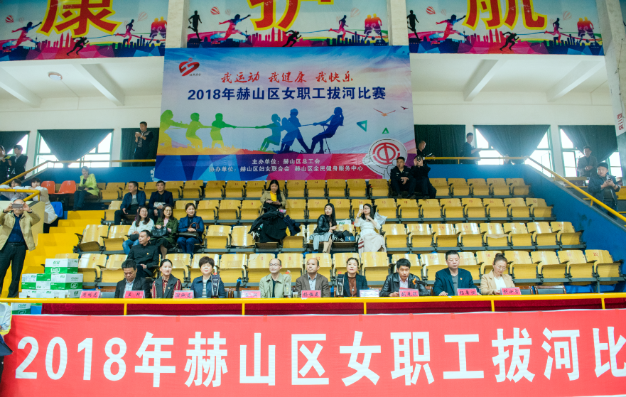3月29日至30日,赫山区总工会在区体育馆举办“我运动、我健康、我快乐”为主题的女职工拔河比赛,来自全区乡镇、街道、龙岭工业集中区、企业和机关事业单位33支代表队400余名女职工参赛。区政协主席杨柏森、区人民政府副区长石汉、区人大副主任蒋美华、区政协副主席谢淑莲、区妇联主席王艳、区纪委驻区委组织部纪检组组长杨粤归出席开幕式。