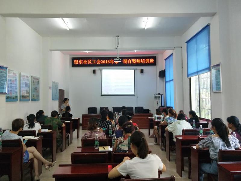 6月11日上午9时,银东社区工会“一户一产业工人”培养工程——育婴师职业技能培训班在社区市民学校正式开班,将近40名社区下岗职工参加了此次培训。市总工会党组成员、经审会主任肖奇志,市总工会女工部主任李果,市总工会法律保障部部长曾建平一行也来到社区视察培训情况。
