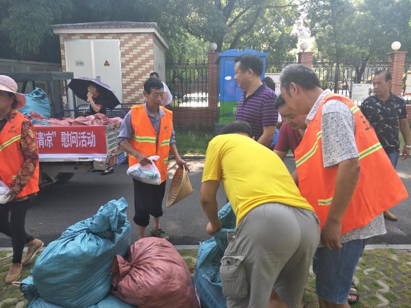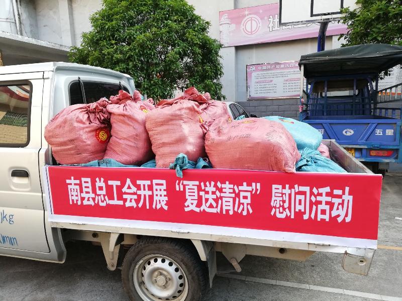 盛夏时节,天气炎热,为切实做好高温酷暑期间的防暑降温活动,确保一线职工身体健康,积极投入工作,7月24日,南县总工会党组书记陶建华带领党组成员先后去到交警队、环卫处、顺祥水产施工工地、计生妇幼保健院施工工地、城市管理行政执法局、玉诚清洁公司开展“夏送清凉”活动,将风油精、绿豆、花露水、毛巾、沐浴露等防暑用品送到户外作业的一线职工手中,帮助广大职工群众安全度夏、清凉度夏。