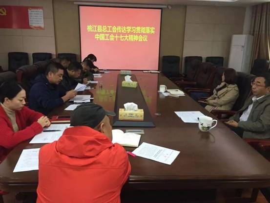 11月5日,桃江县总工会召开专题会议,传达贯彻中国工会十七大会议精神,机关全体干职工参加会议,党组书记、副主席肖金兰主持会议。