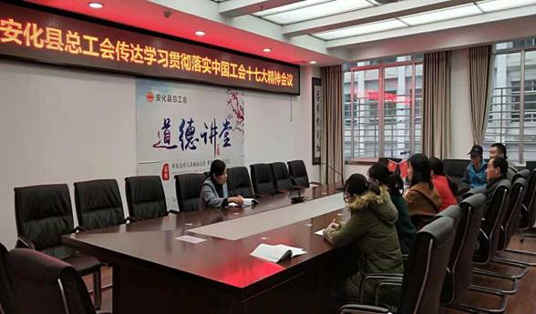 11月15日,安化县总工会召开专题会议,传达学习贯彻中国工会十七大会议精神,机关全体干职工参加会议,会议由班子成员、副主席谌红雨主持。