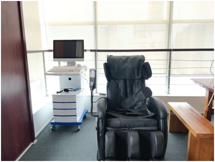 团体活动区配备了专业电脑,里面有几十首轻音乐,职工聆听时能全方位放松身心,缓解紧张情绪。电脑里的多功能身心反馈训练系统,可以用来进行压力测评、心情测评等,针对测试结果,系统还会给出相应的心理调节建议。