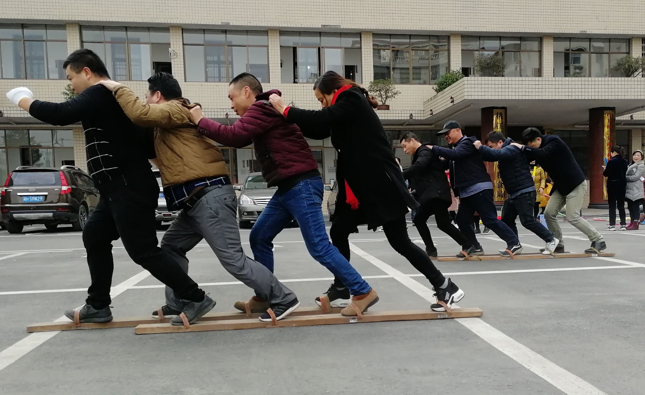 本次活动分4个工会小组进行竞技,共设置了顶气球、赶小猪、掷沙包、三人四足、同舟共济、珠行万里、快乐传递、拔河、双百分、麻将等10个竞技性与趣味性相结合的运动项目。