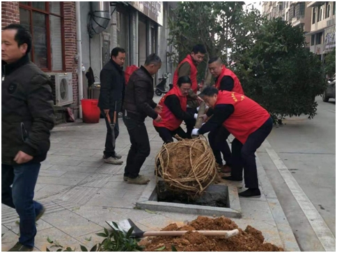 植树现场,有的挖土坑、有的放树苗、有的填土夯实、有的提水浇灌,干职工们相互协作,交织成一幅生动的画面。经过一番热火朝天的劳动,一棵棵新树苗在明媚的春光里迎风挺立,小区顿显生机与活力。
