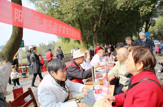 阳春三月,草长莺飞,春风送暖,与爱同行。3月19日上午,益阳市秀峰公园北门口热闹异常,益阳医专老干部学雷锋义诊台刚刚搭好,便被闻讯赶来的市民团团围住,在益阳医专老干部学雷锋爱心义诊的活动现场,身穿白大褂的老医生笑盈盈的帮每一位前来咨询的市民进行健康检查。