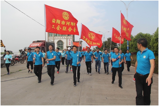 本次活动倡导职工拥抱健康、徒步户外、减肥塑身。活动不设时间记录,不设名次,只需要按照规定时间完成即可,路线从沙堡洲天泓码头出发,沿S217沙老线,健步至沙老线入口,全程约8公里。所有职工精神抖擞,步划矫健,展现了蓬勃向上的精神风貌。