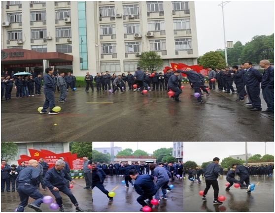 在踩气球比赛现场,参赛队员每只脚绑一个气球,在划定的活动区域内相互踩对方的气球,将对方气球踩完者获胜。“加油,快向左踩!”“踩右边!右边!”“噢!赢了赢了!”参赛队员在事先设定的范围内进行个人混战,伴随着欢呼声,气球啪啪如爆竹声般清脆。运动会中最具挑战性的是三人四足接力竞走,这个项目既需要队员的协调和配合,又需要体力与速度,比赛中虽然绊脚、掉绳等状况不断,但队员们均能发扬团结拼搏的精神,整个比赛过程趣味横生。赛场上,职工们都非常的投入,个个精神抖擞,同台竞技,当仁不让,体现了合作与竞赛的精神风貌。