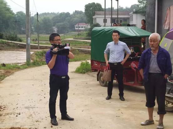 桃江广播电视台首席记者胡卫红(左一)在乡村采访