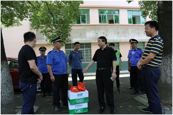 “天气炎热,你们一定要注意防暑和自身安全”,24日下午,副区长陈召华带领区总工会一行人走上街头,深入劝导点,看望慰问治理劝导工作人员。