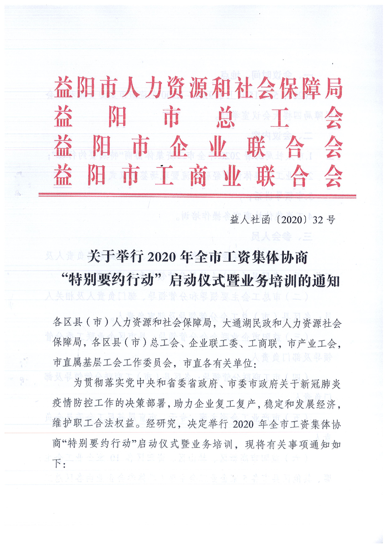 关于举行2020年全市工资集体协商“特别要约行动”启动仪式暨业务培训的通知