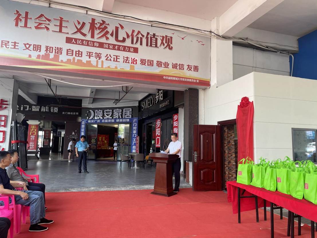 8月16日,益阳市银城大市场商圈联合工会举行揭牌仪式,市国资委党委书记、主任刘松涛出席并致辞,市总工会党组书记、副主席张友良参加并讲话。揭牌仪式由市国资委党委委员、副主任文明涛主持。