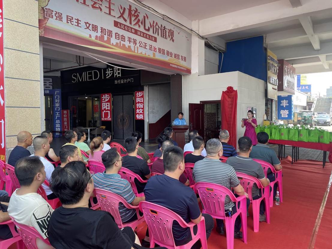 最后,刘松涛和张友良共同为益阳市银城大市场商圈联合工会揭牌。