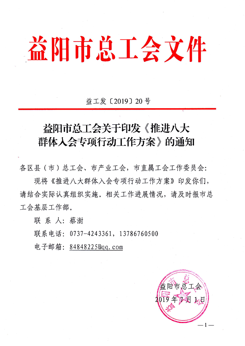关于印发《推进八大群体入会专项行动工作方案》的通知